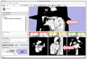 | + | Image:Slicer_IGTL_PartialImage.png|'''Partial image update using OpenIGTLink, February 2008'''<br> [[OpenIGTLink]] allows an external imaging scanner (Ultrasound/CT/MR) to update part of a volume, which has already been loaded on the Slicer. This is helpful if the scanner sweeps the subject with its imaging plane, and transfer images on-the-fly to the Slicer. | ||
