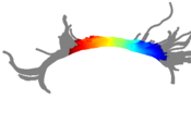 | + | [[Image:cingulum1.png|thumb|left|175px|Arc length coordinates (in color) for one subject.]] | ||