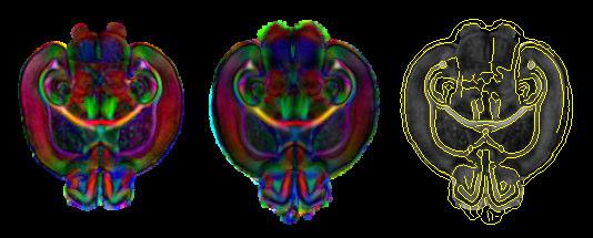 | − | |[[Image:Normalization.JPG|thumb| | + | |[[Image:Normalization.JPG|thumb|640px|Spatial normalization of 5 mouse brains. (a) Color map of the template. (b) Color map |