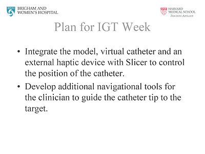 We will incorporate a continuum robot model in Slicer to simulate flexible surgical instruments. In addition, we will also integrate a virtual catheter module with Slicer to aid in the navigation of the surgical tool to the target location.