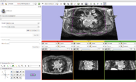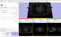 As we proceed and make progress with the pipeline we have simplified it by consolidating many of the steps with minimal user input. Users are now prompted to provide a pre and post set of MRI data. Once provided, a button labeled 'MRI Intensity Correction' is enabled. When the user clicks the button, Slicer begins the pipeline by using N4 ITK MRI bias correction immediately followed by a whole-image affine registration. Once completed, the user is then prompted to crop the images to the desired ROI. After the ROI is defined a non-rigid registration is performed yielding registered pre and post MRI images and the corresponding transformation matrix. The following image gallery shows the progress and current state of the GUI. | As we proceed and make progress with the pipeline we have simplified it by consolidating many of the steps with minimal user input. Users are now prompted to provide a pre and post set of MRI data. Once provided, a button labeled 'MRI Intensity Correction' is enabled. When the user clicks the button, Slicer begins the pipeline by using N4 ITK MRI bias correction immediately followed by a whole-image affine registration. Once completed, the user is then prompted to crop the images to the desired ROI. After the ROI is defined a non-rigid registration is performed yielding registered pre and post MRI images and the corresponding transformation matrix. The following image gallery shows the progress and current state of the GUI. | ||