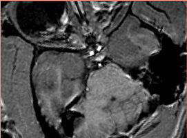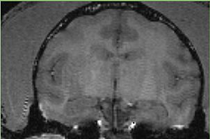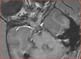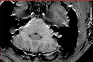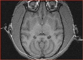 Angio sequence (right name?) has apparently been used for some (7 out of 10) subjects CLW: This is normal T1w blood flow artifact, but it is pronounced, perhaps because of the small brain size.