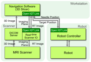 - Tokuda J, Fischer GS, Papademetris X, Yaniv Z, Ibanez L, Cheng P, Liu H, Blevins J, Arata J, Golby AJ, Kapur T, Pieper S, Burdette EC, Fichtinger G, Tempany CM, Hata N.. OpenIGTLink: an open network protocol for image-guided therapy environment. Int J Med Robot. 2009 Dec;5(4):423-34.
