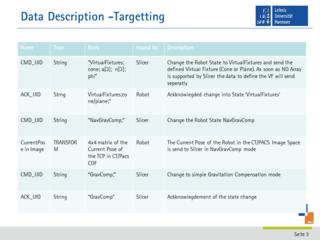 Protocol Description for the LightWeightRobotIGT first version for the targetting phase