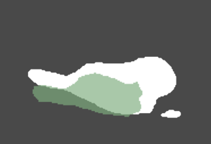 | Segmentation of an atlas image by GA Tech, using their endocardial auto-segmentation algorithm. | Segmentation of the same image with the same algorithm by Utah. | User-based variability in thresholding the probability mask output. (Green region - Utah; white region - GA Tech). |